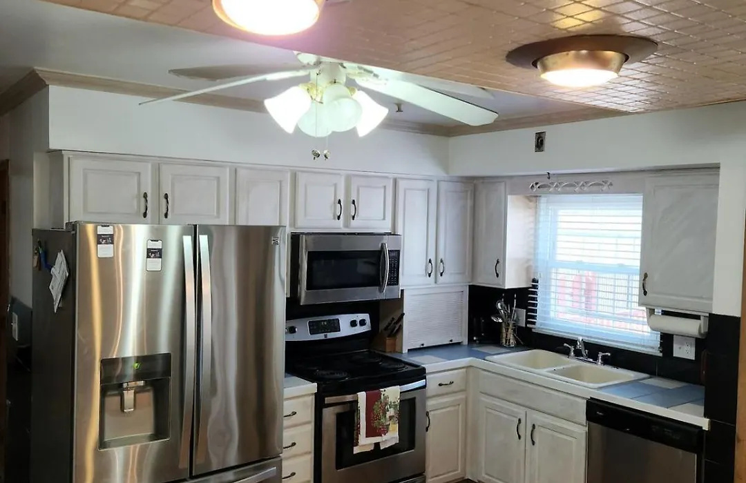 Een complete keuken is compleet met een magnetron en een koelkast. Gasten kunnen de luchthaven Port Columbus gemakkelijk bereiken, op 20 minuten rijden van de 2-badkamer woning.